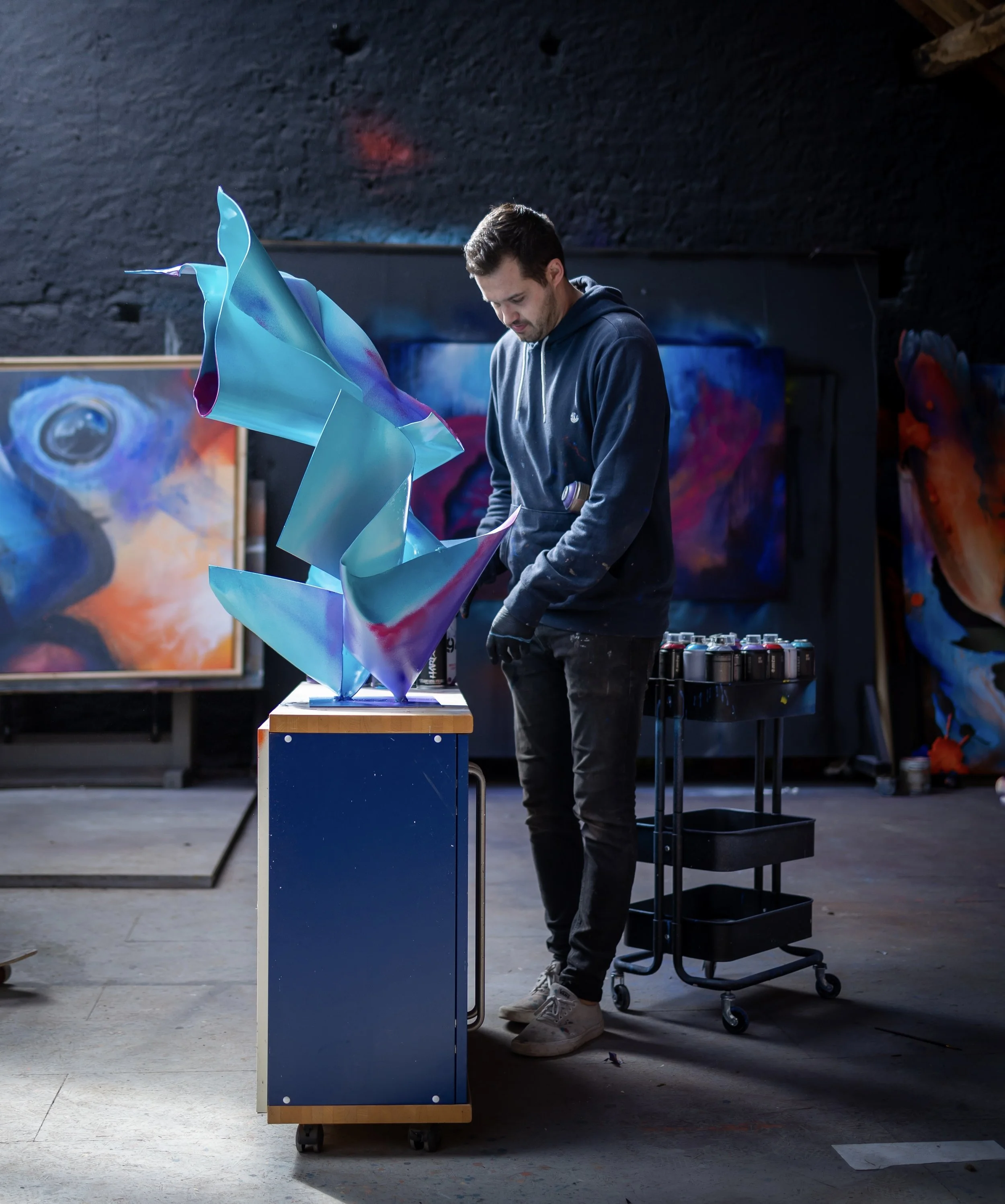Limited edition of 10 uniquely handpainted sculptures with three layers of acrylic glass superposition in a shou sugi ban wood base. 26x 22 x 8cm | 04/2024