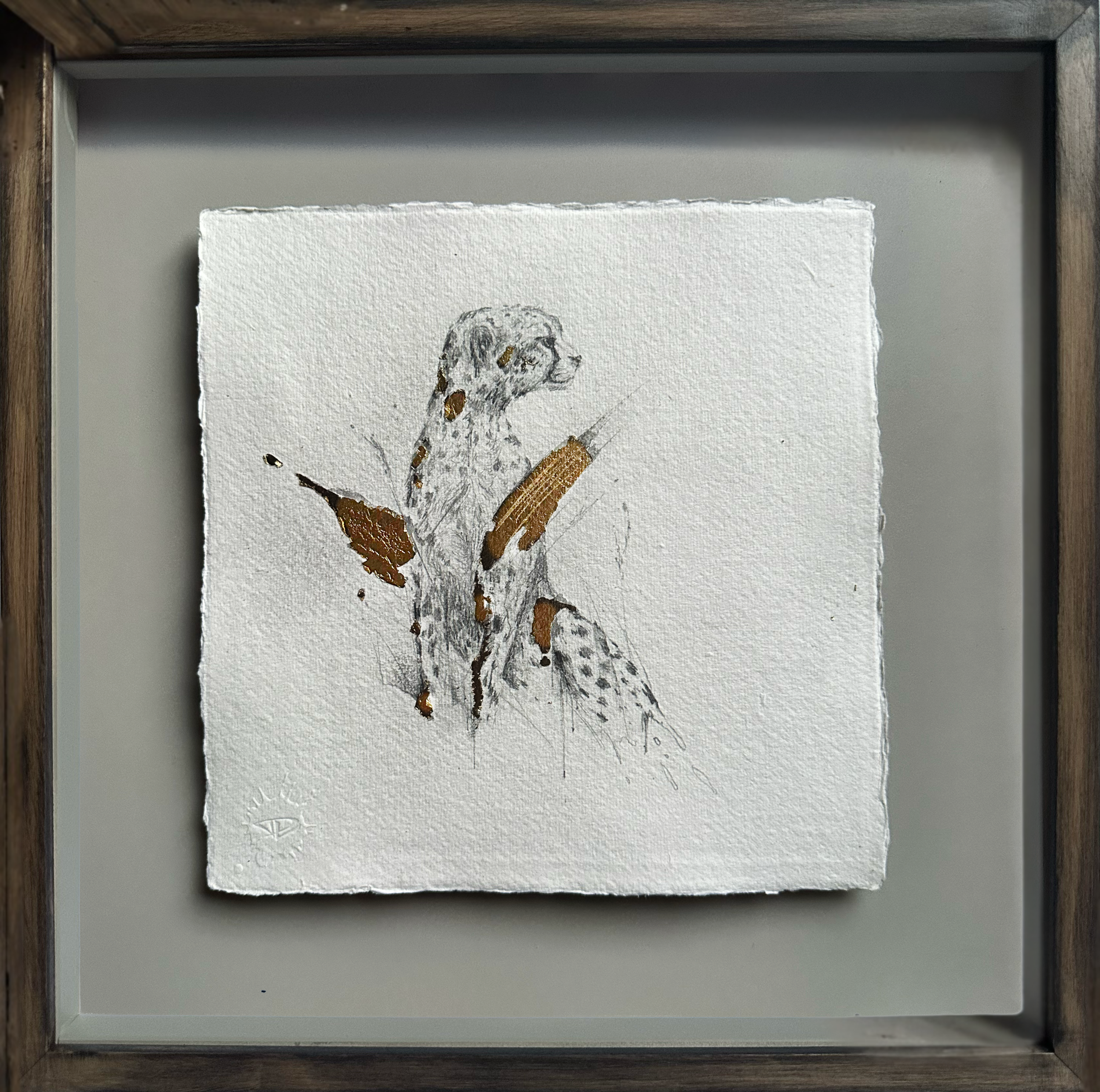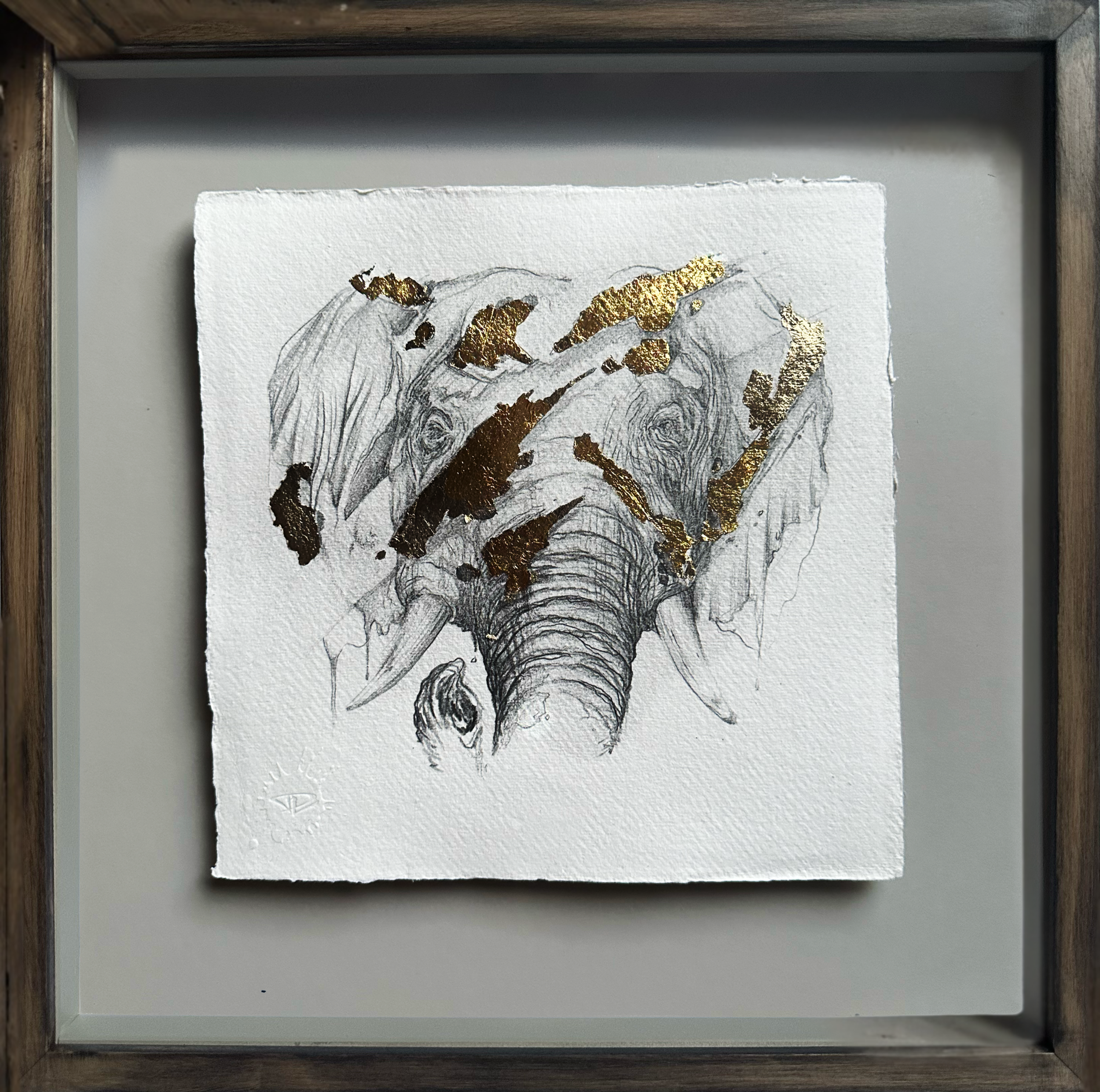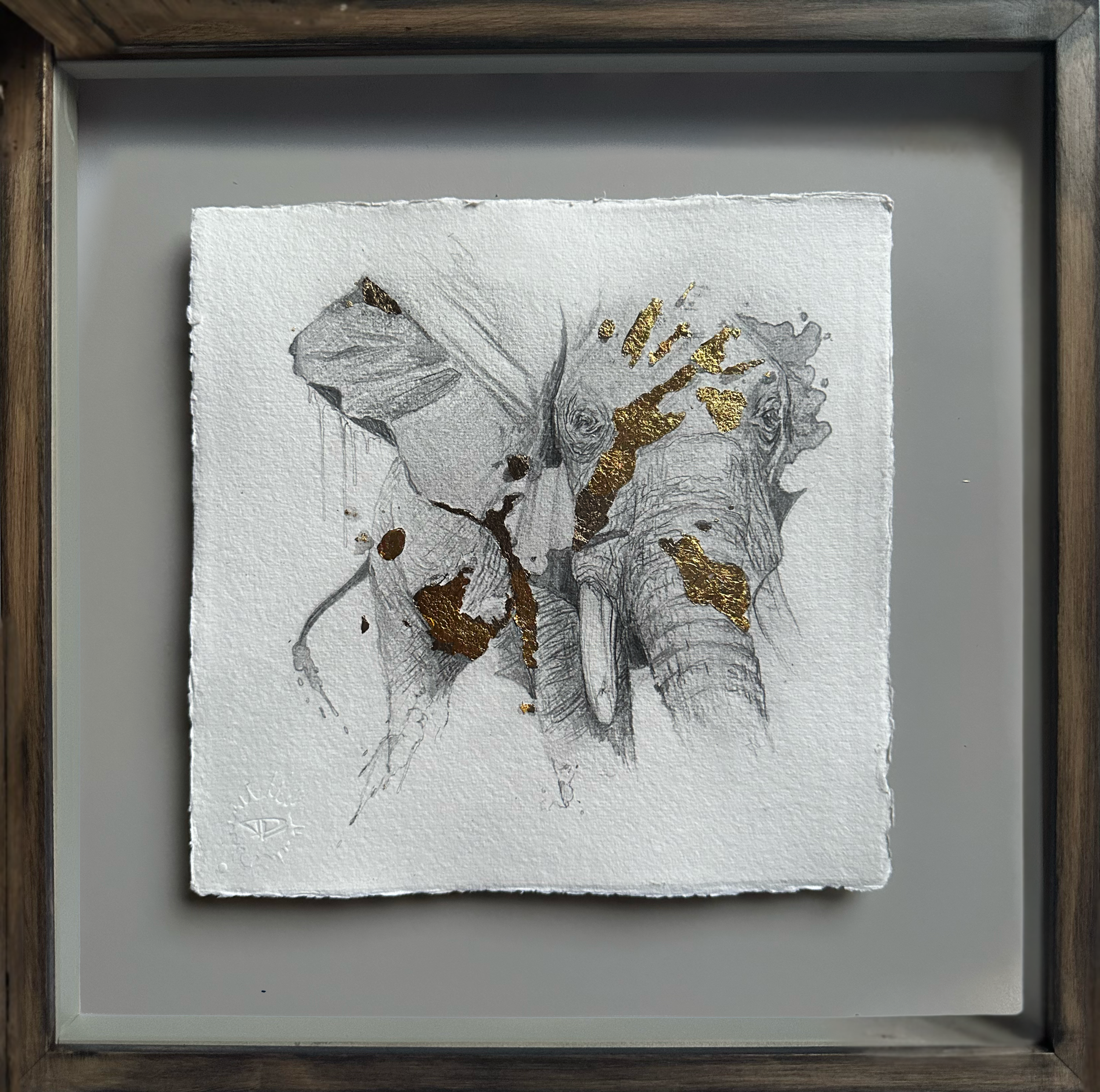 Pencil and gold leaf on handmade paper in a custom 30 x 30cm frame