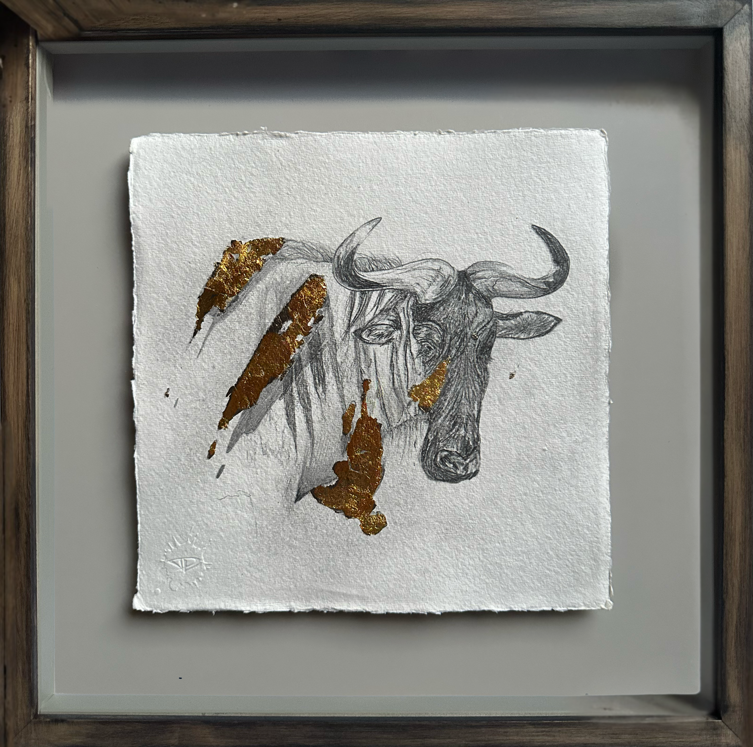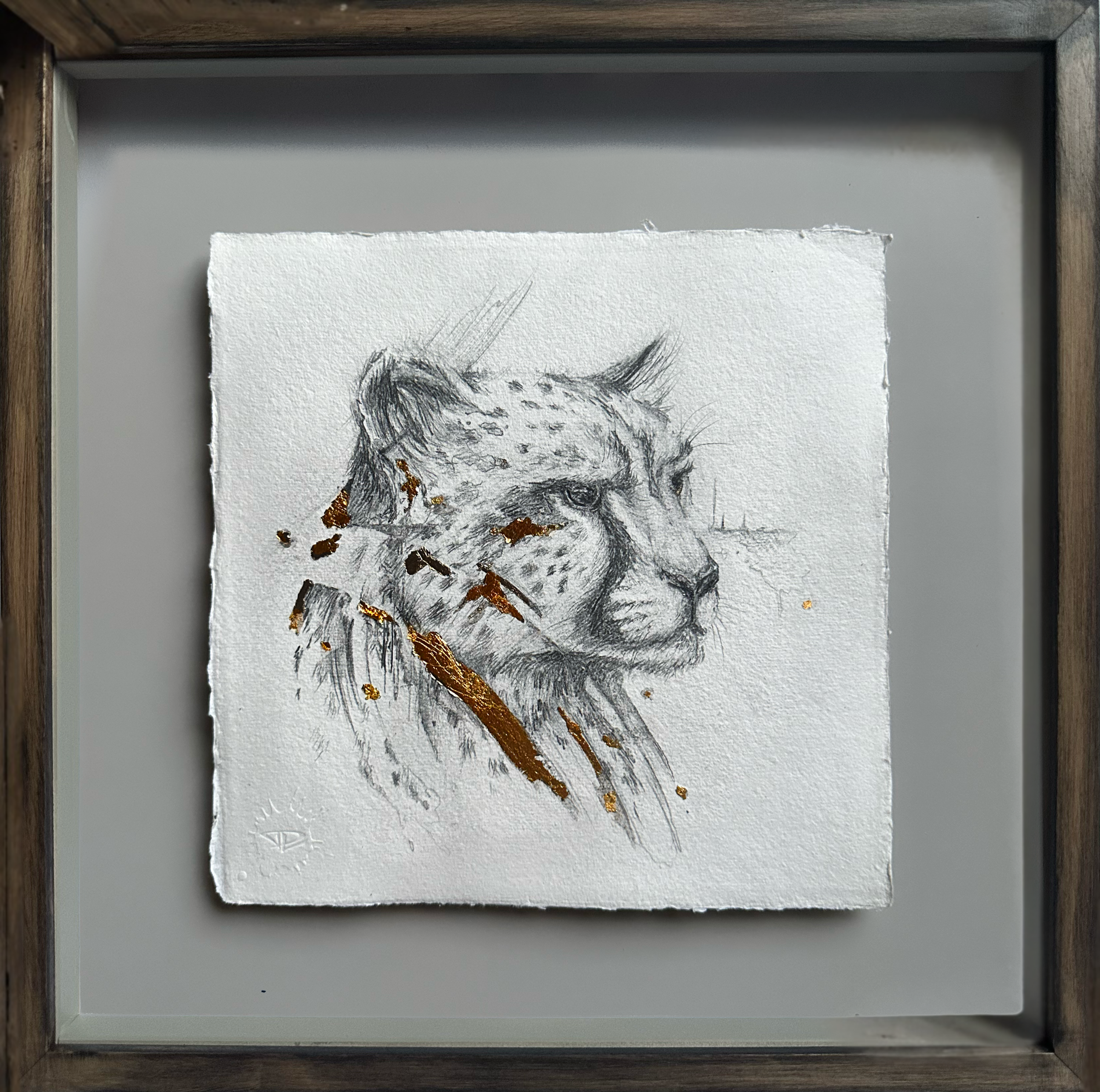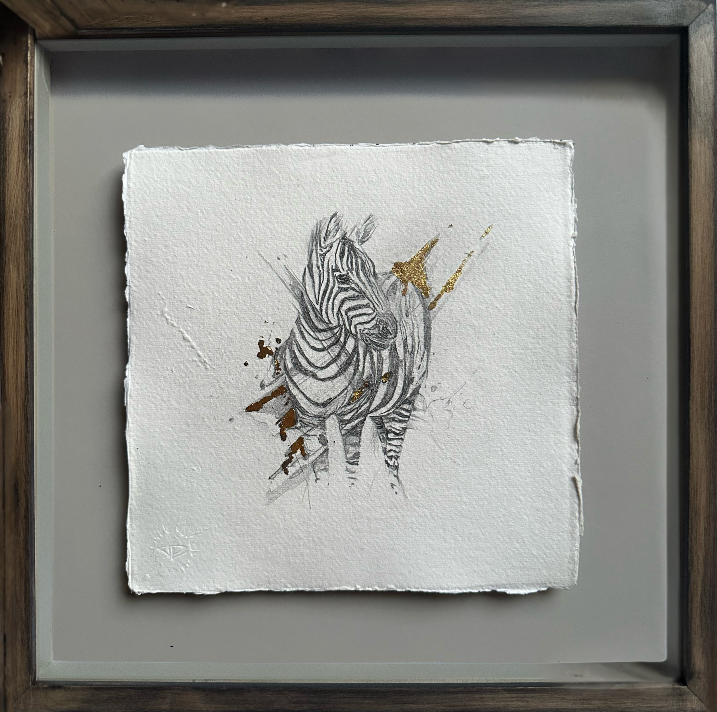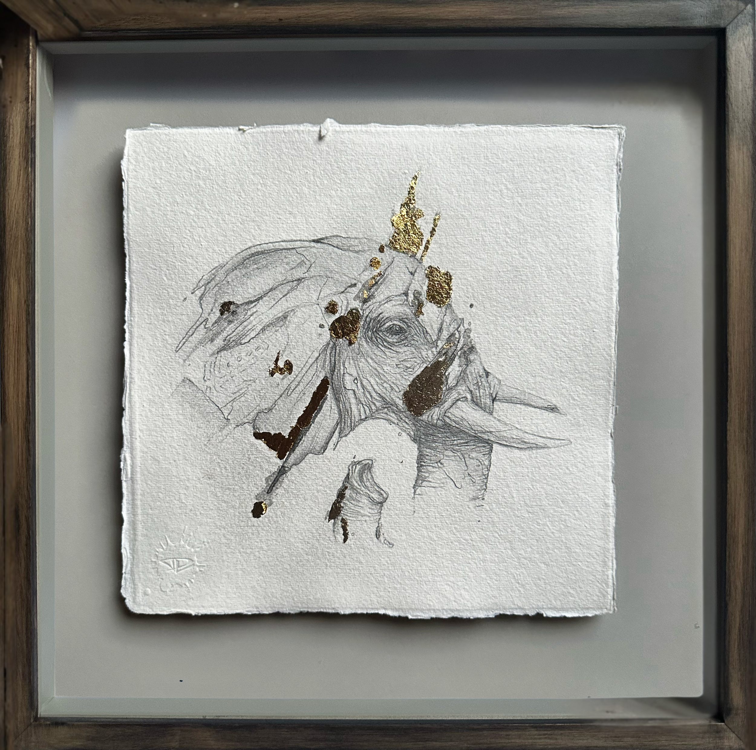 Pencil and gold leaf on handmade paper in a custom 30 x 30cm frame